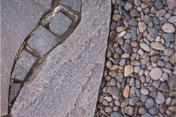 Blend fine gravel, medium stones, and larger river rock for a realistic, layered appearance.